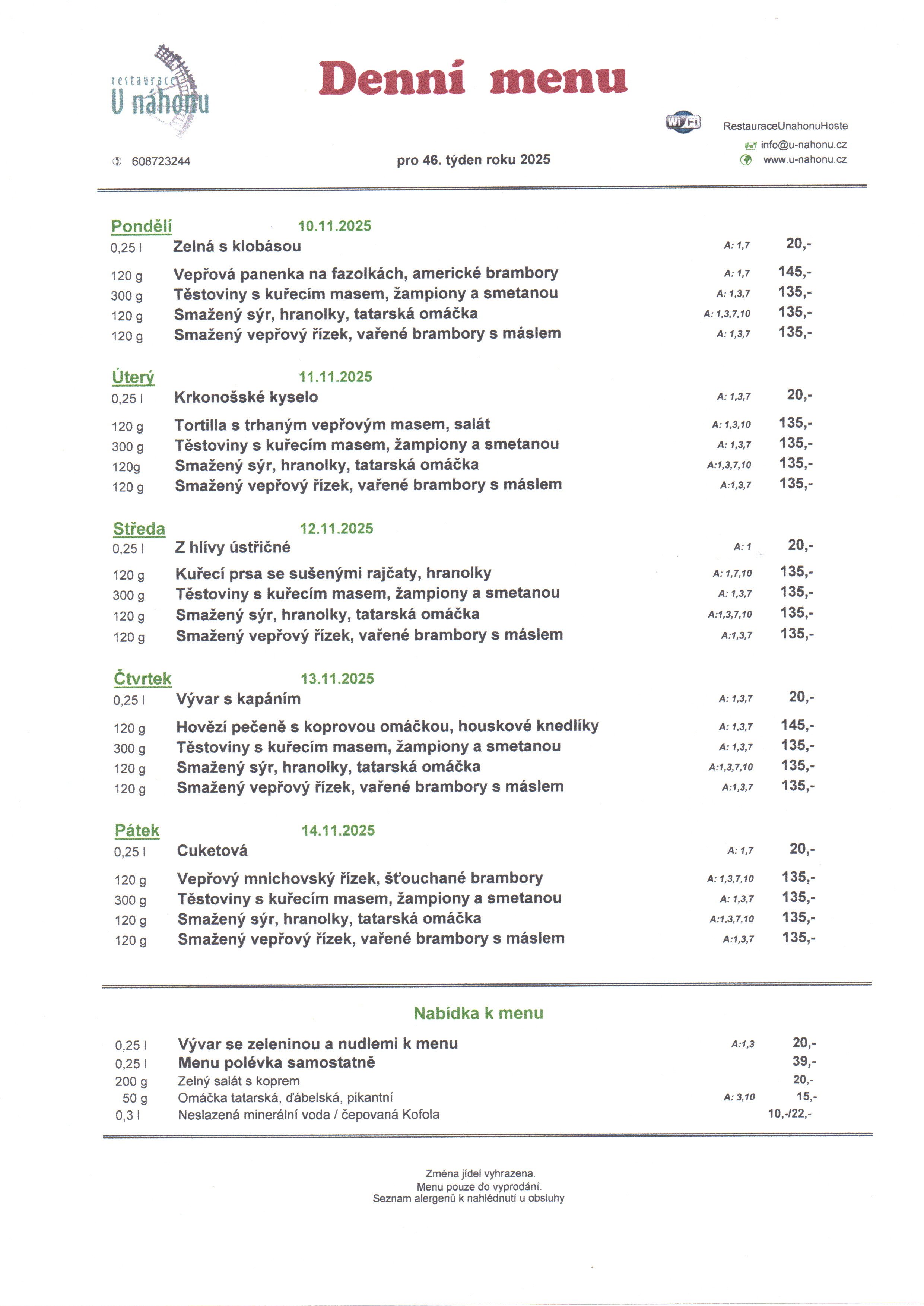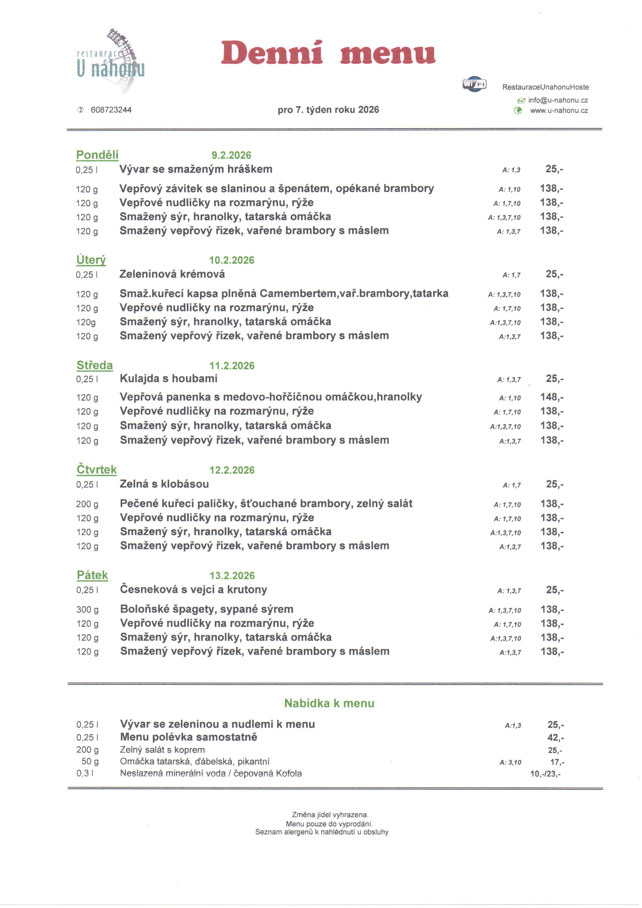 Vaši rezervaci vždy ochotně vyřídíme. Těšíme se na Vás! Rezervaci můžete podat přes telefonicky na +420608723244. Příjímáme platby v hotovosti. Pohodlně zaplatíte i stravenkami Ticket Restaurant®, kartou VISA, bezkontaktní platbou a kartou Mastercard. Pokrmy u nás připravené si můžete předem objednat a my Vám je zabalíme s sebou. Nabízíme prostory pro soukromé či firemní akce. Kontaktujte nás v případě zájmu. Hledáte netradiční místo pro svou svatbu? K dispozici jsou Vám luxusní prostory a zajištění celého cateringu podle Vašich představ. Kontaktujte nás a domluvte si osobní schůzku. Otevřeno pro Vás máme každý všední den i o víkendu.