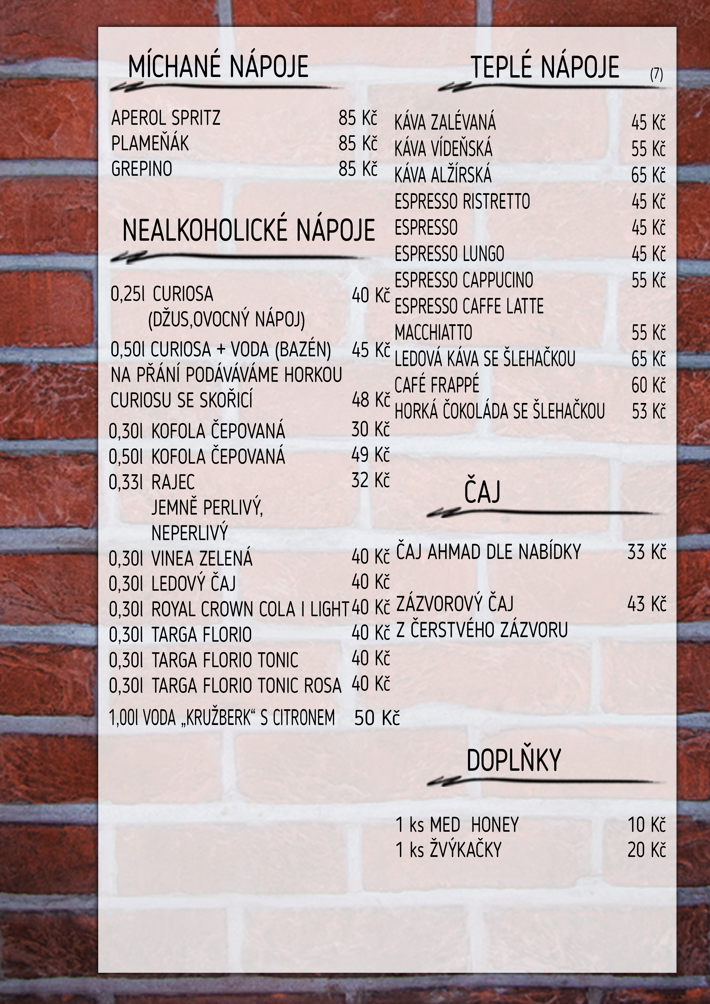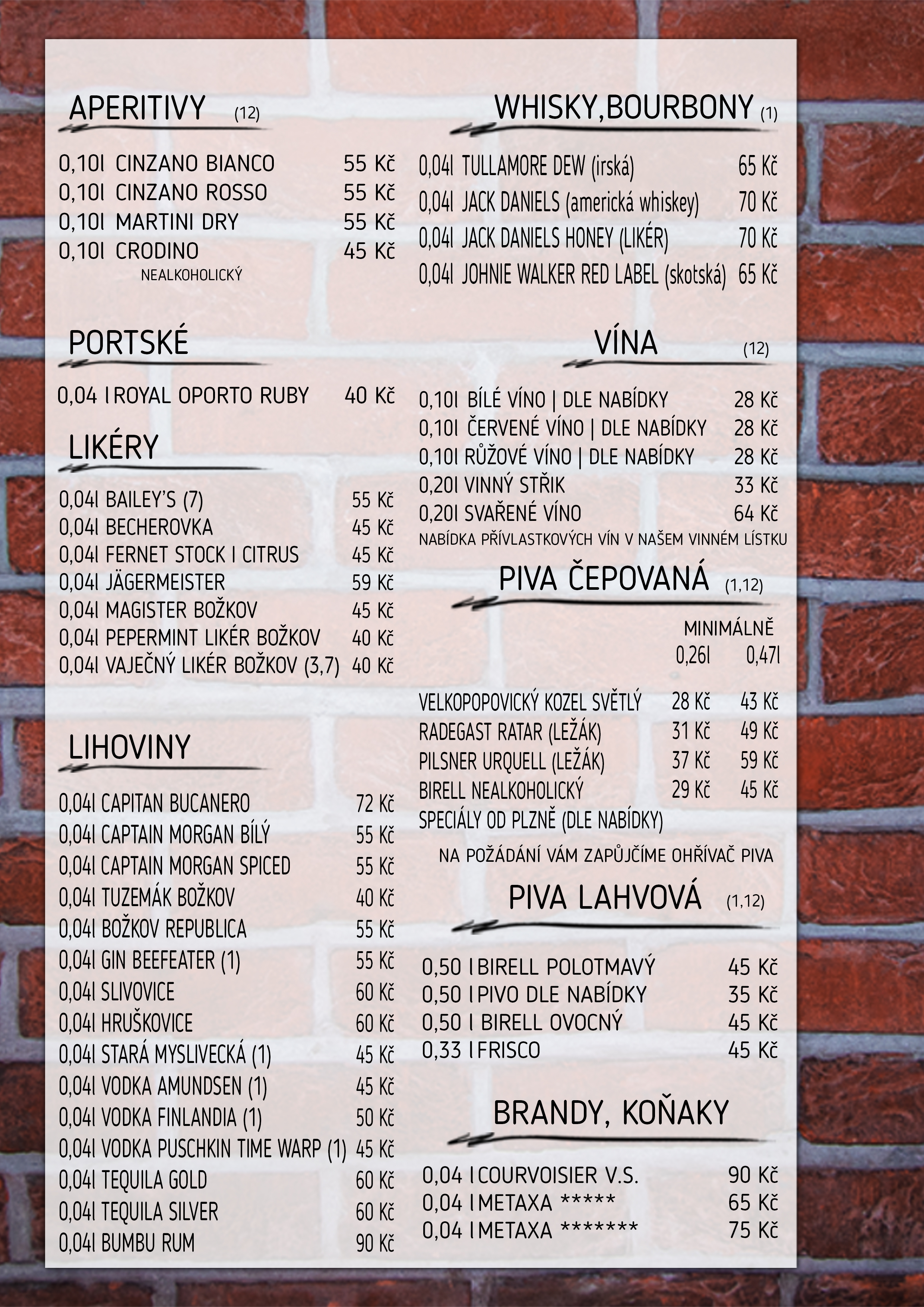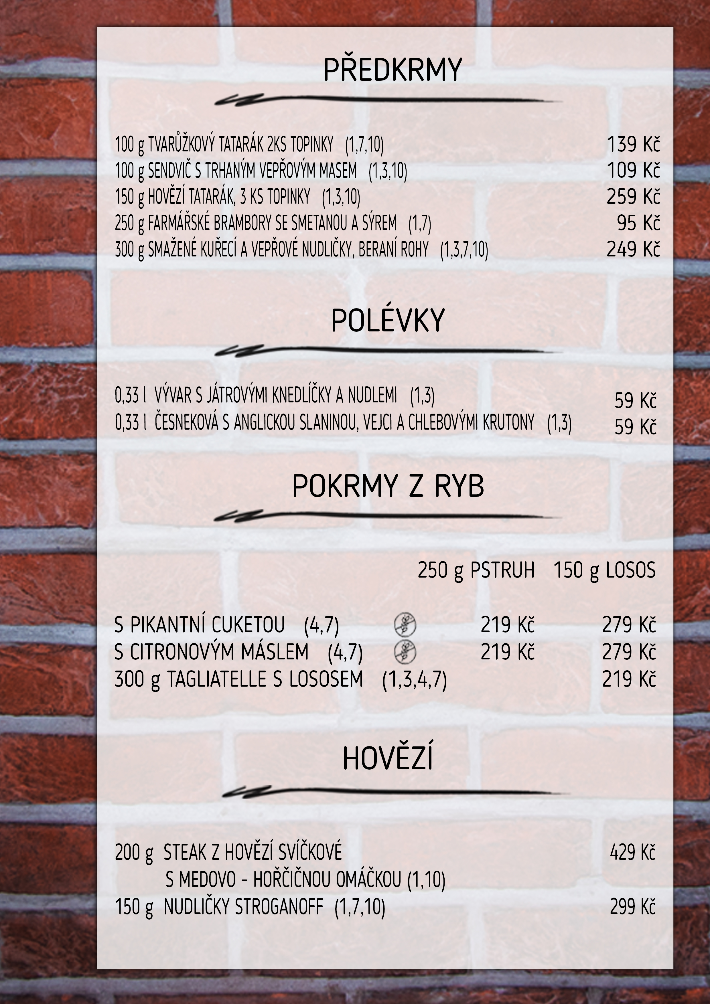 Vaši rezervaci vždy ochotně vyřídíme. Těšíme se na Vás! Rezervaci můžete podat přes telefonicky na +420608723244. Příjímáme platby v hotovosti. Pohodlně zaplatíte i stravenkami Ticket Restaurant®, kartou VISA, bezkontaktní platbou a kartou Mastercard. Pokrmy u nás připravené si můžete předem objednat a my Vám je zabalíme s sebou. Nabízíme prostory pro soukromé či firemní akce. Kontaktujte nás v případě zájmu. Hledáte netradiční místo pro svou svatbu? K dispozici jsou Vám luxusní prostory a zajištění celého cateringu podle Vašich představ. Kontaktujte nás a domluvte si osobní schůzku. Otevřeno pro Vás máme každý všední den i o víkendu.